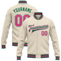 FUNSTUFFPRINT Custom Cream Pink-Kelly Green Bomber Full-Snap Varsity Letterman Jacket 3D Baseball Jacket