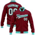 FUNSTUFFPRINT Custom Crimson White-Aqua Bomber Full-Snap Varsity Letterman Jacket 3D Baseball Jacket