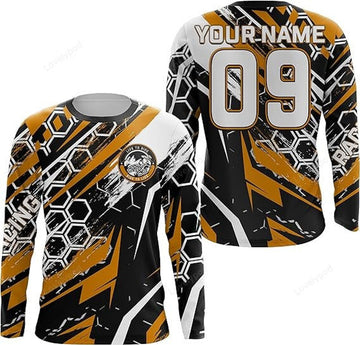 FUNSTUFFPRINT Custom Dirt Bike Jersey Men Women, orange Motocross Off-Road Long Sleeve MX Racing Shirt 3D Long Sleeve T-Shirt