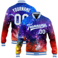 FUNSTUFFPRINT Custom Galactic White-Light Blue 3D Bomber Full-Snap Varsity Letterman Jacket 3D Baseball Jacket
