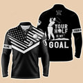 FUNSTUFFPRINT Custom Golf Long Sleeve Men Polo Shirt, Your Hole Is My Goal Custom Name Black American Flag Men Polo Shirt For Golf Lover