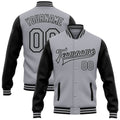 FUNSTUFFPRINT Custom Gray Black Bomber Full-Snap Varsity Letterman Two Tone Jacket 3D Baseball Jacket
