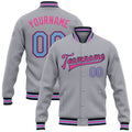 FUNSTUFFPRINT Custom Gray Light Blue Black-Pink Bomber Full-Snap Varsity Letterman Jacket 3D Baseball Jacket