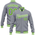 FUNSTUFFPRINT Custom Gray Neon Green-White Bomber Full-Snap Varsity Letterman Jacket 3D Baseball Jacket