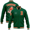 FUNSTUFFPRINT Custom Kelly Green Orange-White Bomber Full-Snap Varsity Letterman Jacket 3D Baseball Jacket
