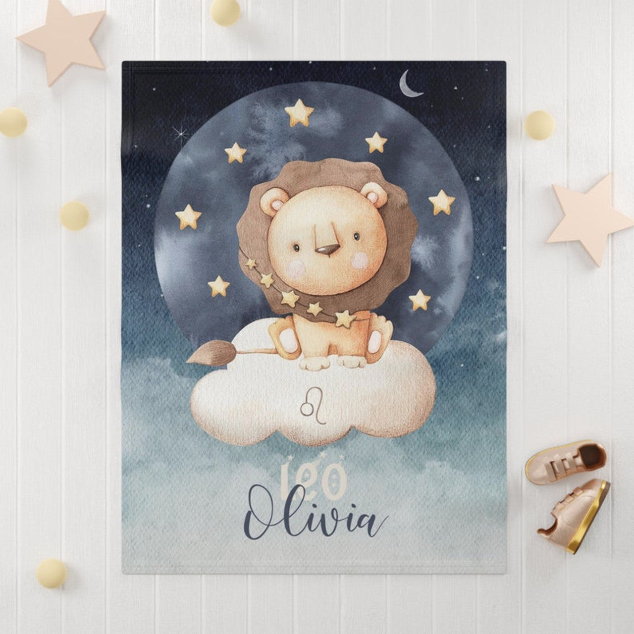 FUNSTUFFPRINT Custom Leo Zodiac Nursery Blanket Personalized Horoscope Baby Blanket Birthday Gift Celestial Blanket Kids Custom Name Blanket Baby Shower Gift
