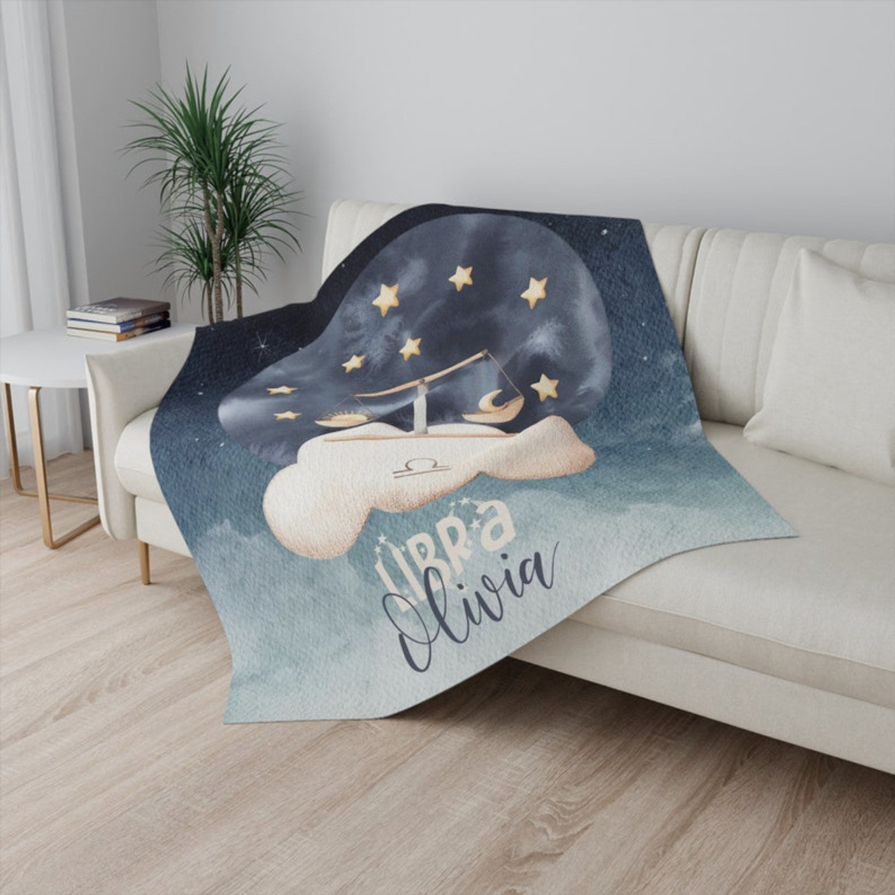 FUNSTUFFPRINT Custom Libra Zodiac Nursery Blanket Personalized Horoscope Baby Blanket Birthday Gift Celestial Blanket Kids Custom Name Blanket Baby Shower Gift