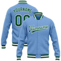 FUNSTUFFPRINT Custom Light Blue Kelly Green-White Bomber Full-Snap Varsity Letterman Jacket 3D Baseball Jacket