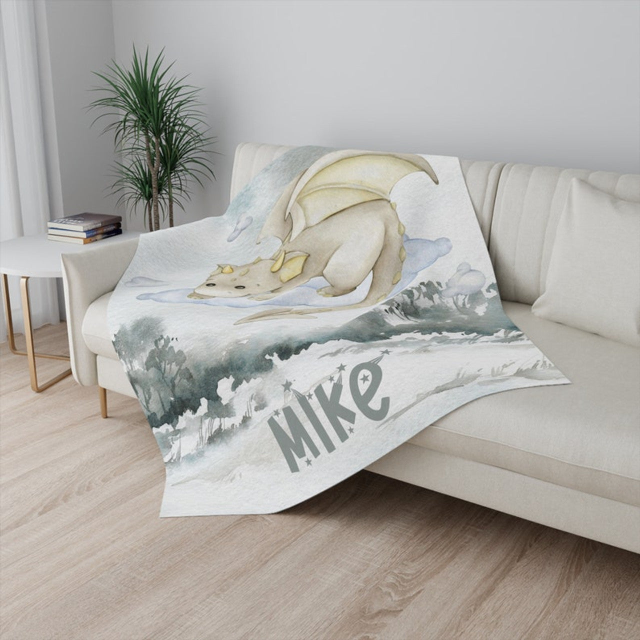 FUNSTUFFPRINT Custom Little Dragon Nursery Blanket Personalized Baby Dragon Blanket Forest Animal Baby Blanket Kids Custom Name Blanket Dino Baby Shower Gift
