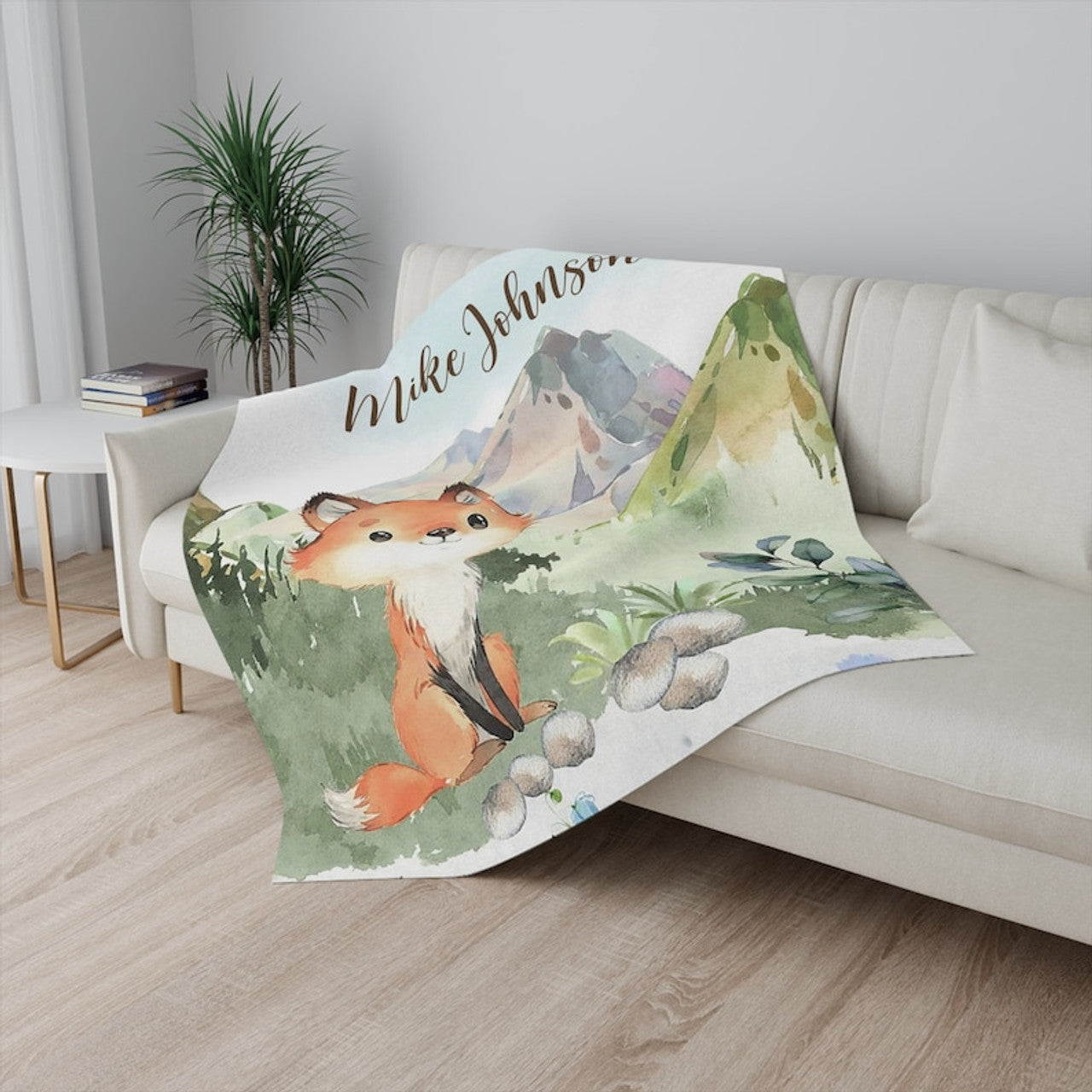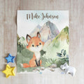 FUNSTUFFPRINT Custom Little Fox Nursery Blanket, Personalized Baby Foxy Blanket, Forest Animal Baby Blanket Kids Custom Name Blanket Woodland Baby Shower Gift