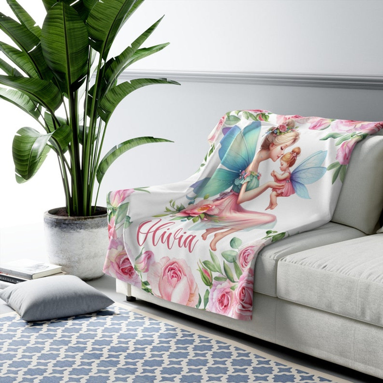 FUNSTUFFPRINT Custom Mom And Baby Fairy Nursery Blanket Personalized Mother Daughter Blanket Flowers Girl Room Decor Kids Custom Name Blanket Baby Shower Gift