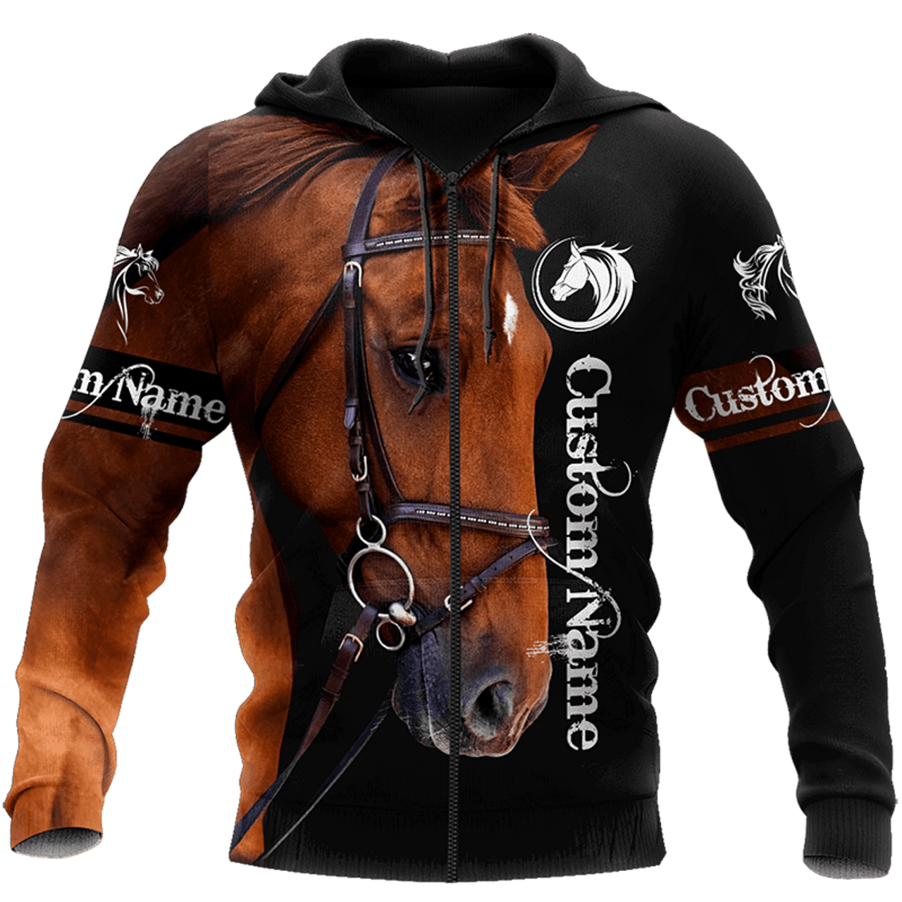 FUNSTUFFPRINT Custom Name 3D All Over Printed Horse Hoodie Black 3D Hoodie and Zip Hoodie