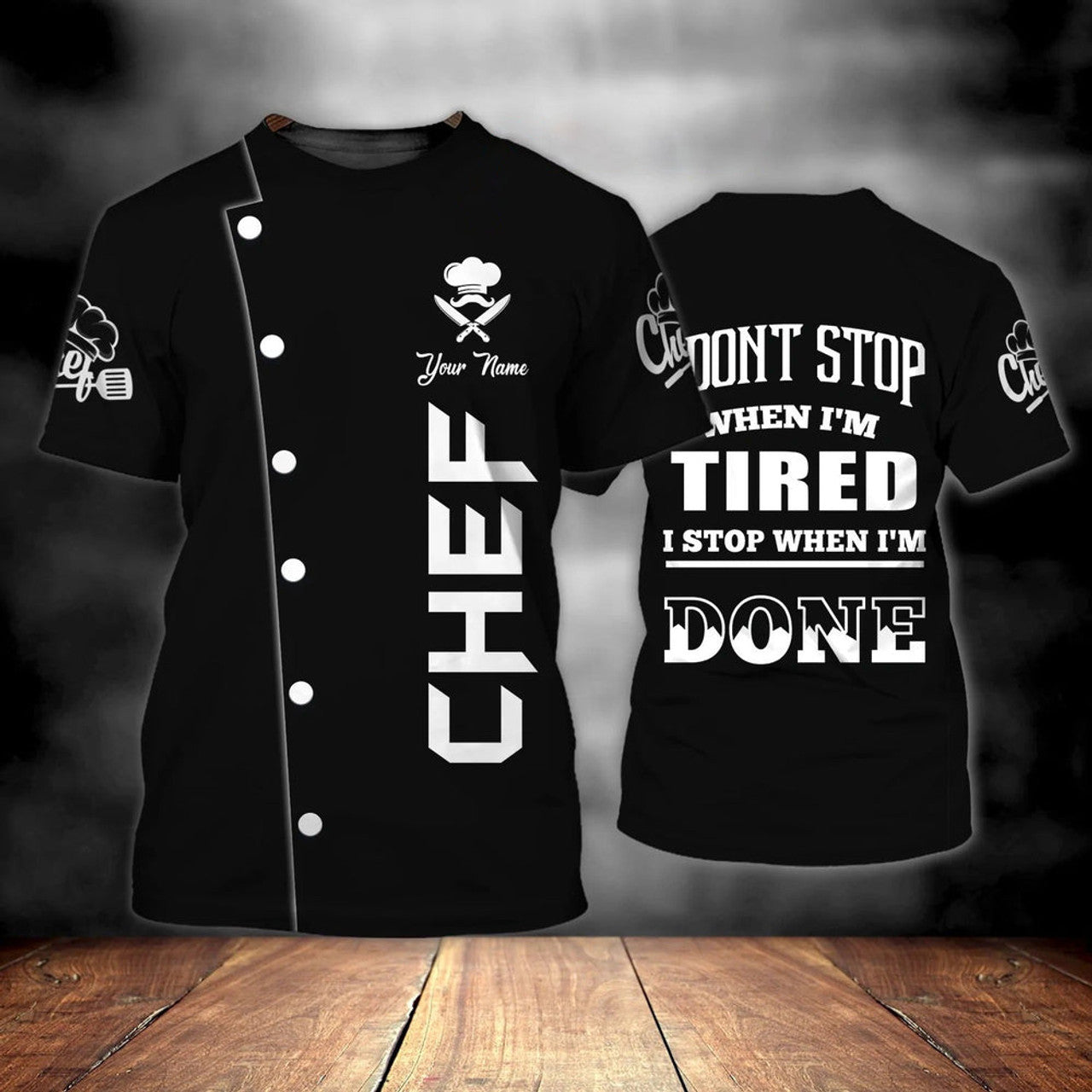 FUNSTUFFPRINT Custom Name Black Shirt For A Chef, I Don't Stop When I'm Tired Shirt, Chef Shirts 3D T-shirt