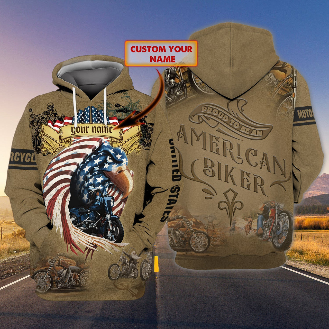 FUNSTUFFPRINT Custom Name-Hoodie-Proud to be an American Biker 3D Hoodie and Zip Hoodie
