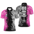 FUNSTUFFPRINT Custom Name, Number Disc Golf Basket Men's Polo Shirts, Pink Ribbons Cancer Awarness Shirt Size S-5Xl