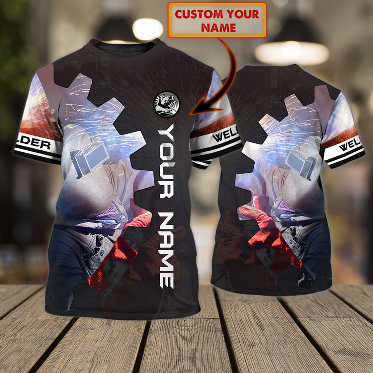 FUNSTUFFPRINT Custom Name Welder Shirt, Gear Welding Work Shirts, Welder Gifts 3D T-shirt