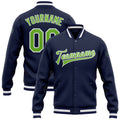 FUNSTUFFPRINT Custom Navy Neon Green-White Bomber Full-Snap Varsity Letterman Jacket 3D Baseball Jacket