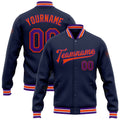 FUNSTUFFPRINT Custom Navy Purple-Orange Bomber Full-Snap Varsity Letterman Jacket 3D Baseball Jacket
