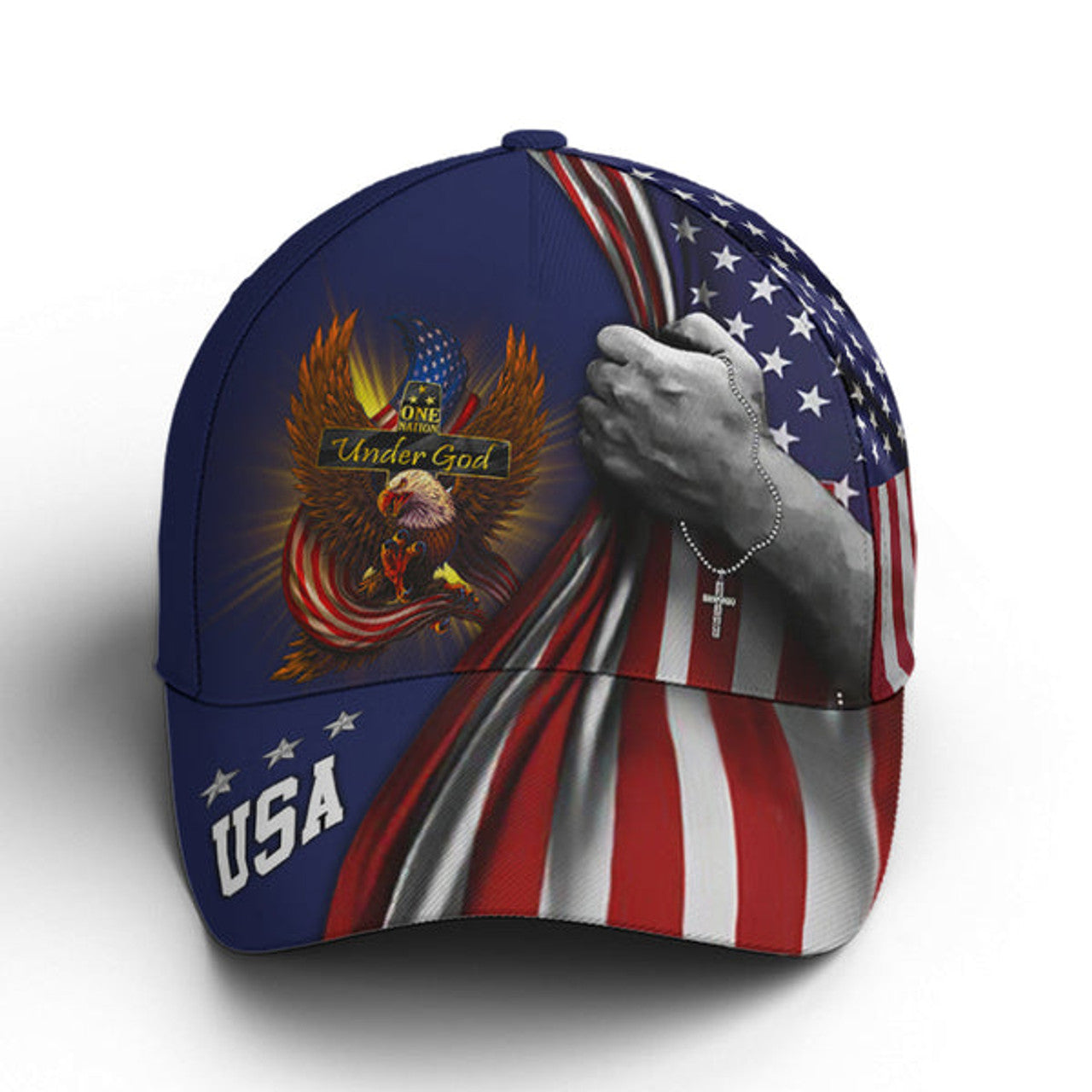 FUNSTUFFPRINT Custom One Nation Under God Eagle American Flag Baseball Cap Patriotic Classic Cap