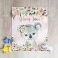 FUNSTUFFPRINT Custom Pink Floral Koala Nursery Blanket, Personalized Baby Koala Blanket, Rose Flowers Little Girl Blanket, Kids Custom Blanket, Baby Shower Gift