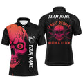 FUNSTUFFPRINT Custom Pink Skull Billiard I Beat People With A Stick Personalized Name Polo Shirt Size S-5XL