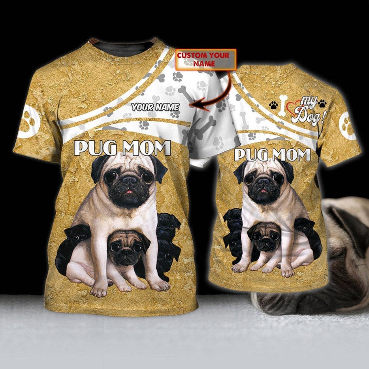 FUNSTUFFPRINT Custom Pug Mom 3D T-Shirt For Men Women, Dog Mom Shirts 3D T-shirt