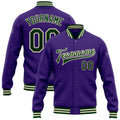 FUNSTUFFPRINT Custom Purple Green-Cream Bomber Full-Snap Varsity Letterman Jacket 3D Baseball Jacket