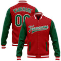 FUNSTUFFPRINT Custom Red Kelly Green-White Bomber Full-Snap Varsity Letterman Two Tone Jacket 3D Baseball Jacket