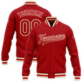 FUNSTUFFPRINT Custom Red Red-Cream Bomber Full-Snap Varsity Letterman Jacket 3D Baseball Jacket