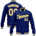 FUNSTUFFPRINT Custom Royal White-Yellow Bomber Full-Snap Varsity Letterman Jacket 3D Baseball Jacket