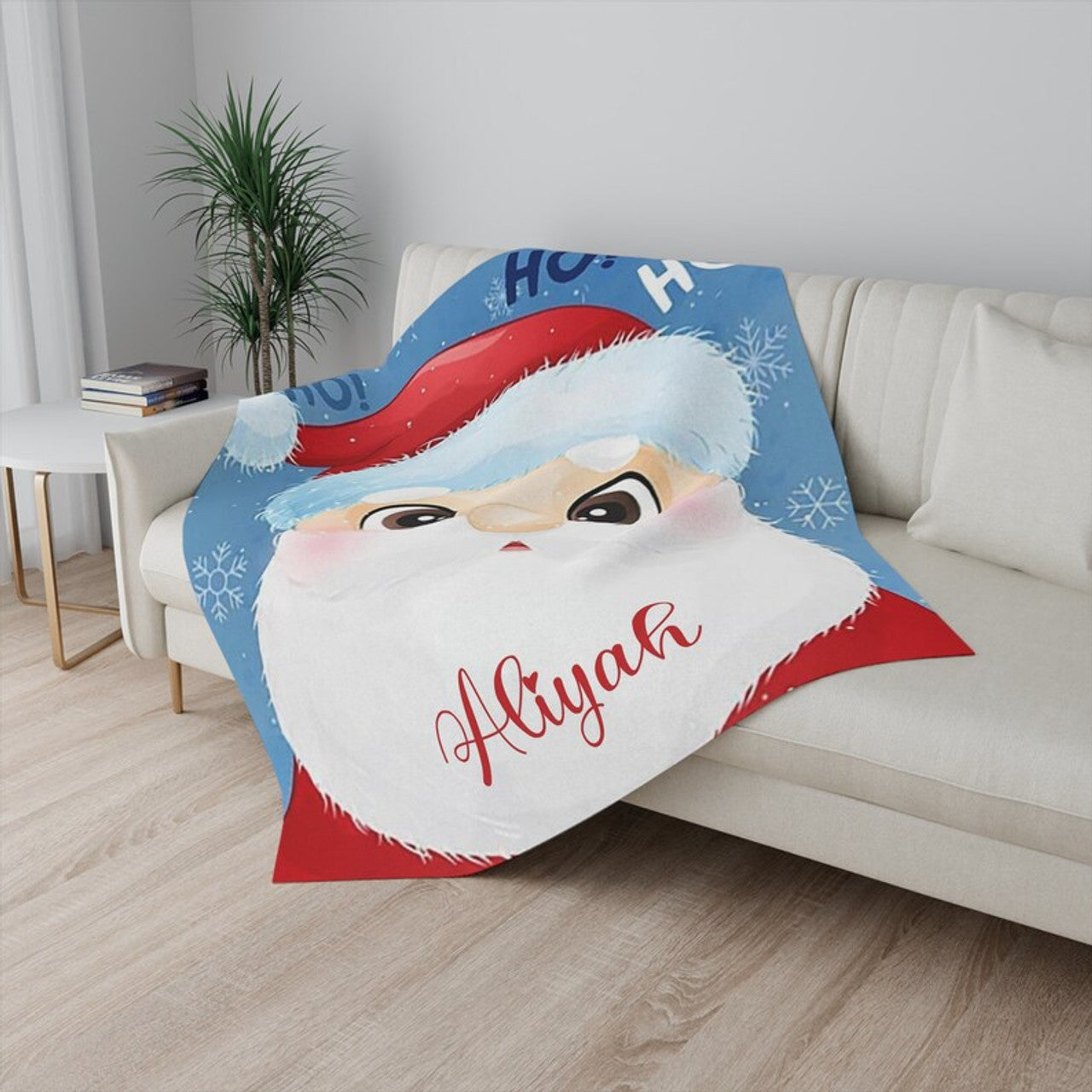 FUNSTUFFPRINT Custom Santa Claus Blanket, Christmas Nursery Blanket, Xmas Baby Blanket, Winter Holiday Christmas Gift, Custom Baby Shower Gift, Kids Name Blanket
