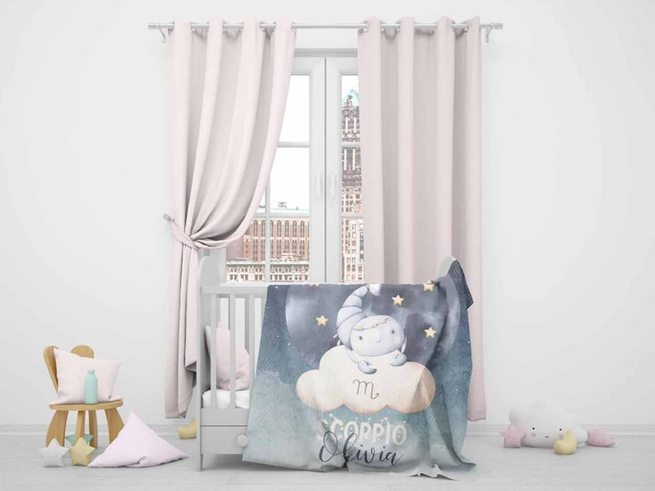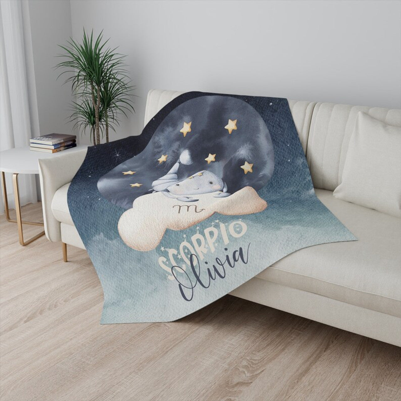 FUNSTUFFPRINT Custom Scorpio Zodiac Nursery Blanket Personalized Horoscope Baby Blanket Birthday Gift Celestial Blanket Kids Custom Name Blanket Baby Shower Gift
