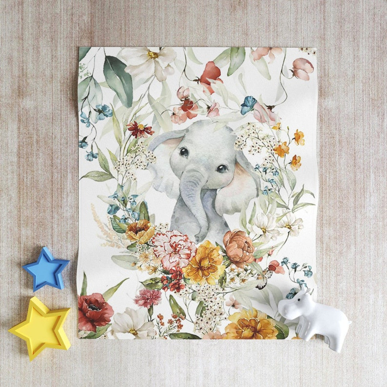 FUNSTUFFPRINT Custom Spring Floral Animal Nursery Blanket, Personalized Baby Elephant Blanket, Jungle Baby Blanket Kids Custom Name Blanket Baby Shower Gift