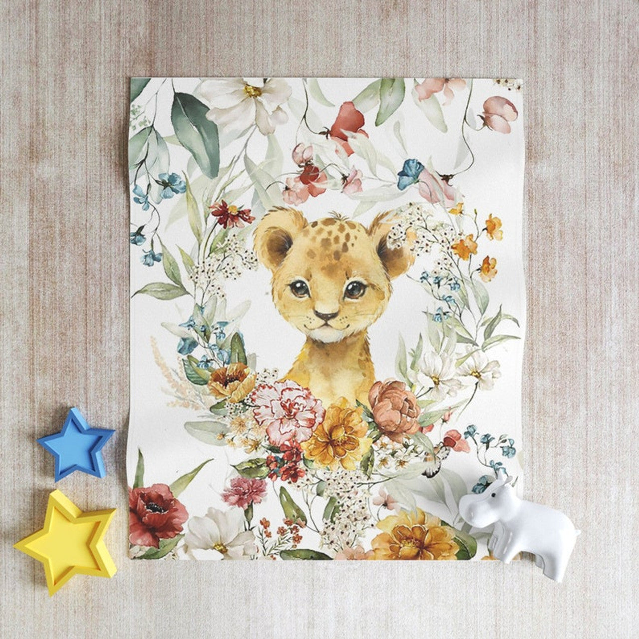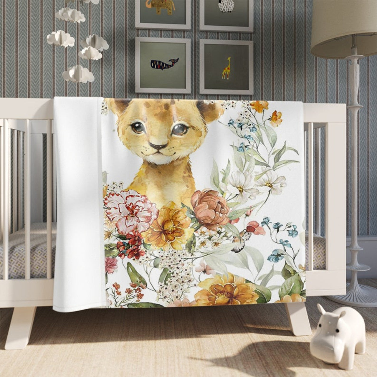 FUNSTUFFPRINT Custom Spring Floral Animal Nursery Blanket, Personalized Baby Lion Blanket, Safari Animal Baby Blanket Kids Custom Name Blanket Baby Shower Gift