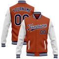 FUNSTUFFPRINT Custom Texas Orange Navy-White Bomber Full-Snap Varsity Letterman Two Tone Jacket 3D Baseball Jacket