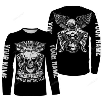 FUNSTUFFPRINT Custom Vintage Motorcycle Engine Live To Ride Personalized Jersey Skull Biker Off-road Racing 3D Long Sleeve T-Shirt