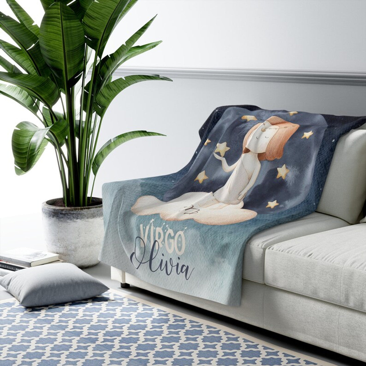 FUNSTUFFPRINT Custom Virgo Zodiac Nursery Blanket Personalized Horoscope Baby Blanket Birthday Gift Celestial Blanket Kids Custom Name Blanket Baby Shower Gift