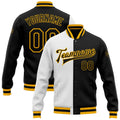 FUNSTUFFPRINT Custom White Black-Gold Bomber Full-Snap Varsity Letterman Split Fashion Jacket 3D Baseball Jacket