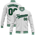 FUNSTUFFPRINT Custom White Black Pinstripe Kelly Green Bomber Full-Snap Varsity Letterman Jacket 3D Baseball Jacket