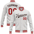FUNSTUFFPRINT Custom White Brown Pinstripe Red Bomber Full-Snap Varsity Letterman Jacket 3D Baseball Jacket