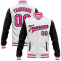 FUNSTUFFPRINT Custom White Pink-Black Bomber Full-Snap Varsity Letterman Two Tone Jacket 3D Baseball Jacket