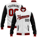 FUNSTUFFPRINT Custom White Red-Black Bomber Full-Snap Varsity Letterman Two Tone Jacket 3D Baseball Jacket