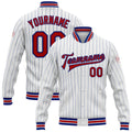 FUNSTUFFPRINT Custom White Royal Pinstripe Red Bomber Full-Snap Varsity Letterman Jacket 3D Baseball Jacket