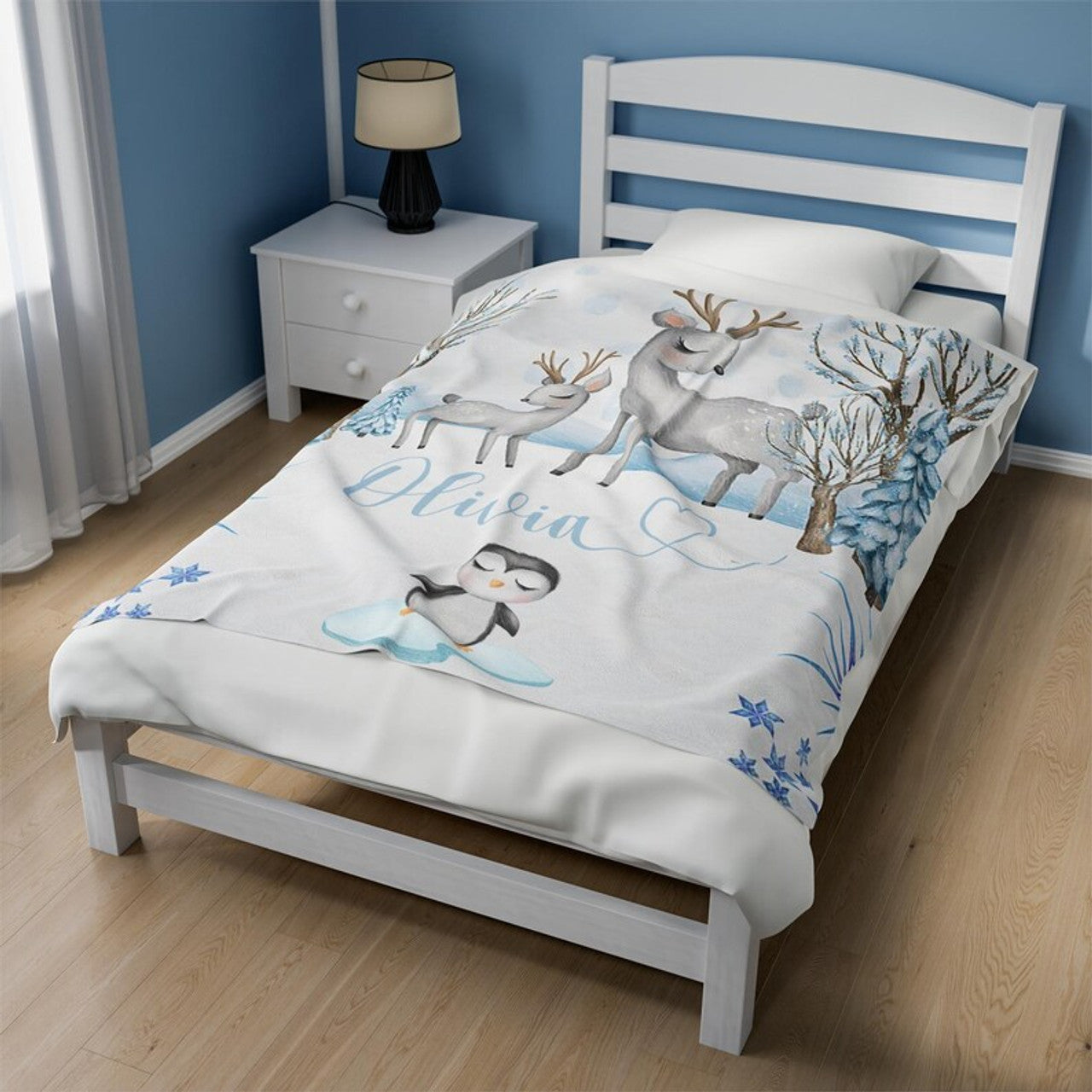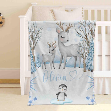 FUNSTUFFPRINT Custom Winter Animals Blanket Woodland Snow Animal Nursery Blanket Custom Name Throw Personalized Newborn Gift Kids Custom Blanket Gift for New Mom