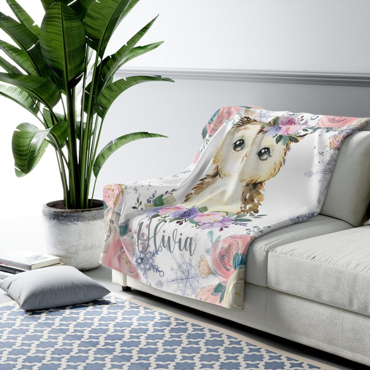 FUNSTUFFPRINT Custom Winter Floral Owl Nursery Blanket, Personalized Baby Owl Blanket, Christmas Baby Blanket Kids Custom Name Blanket Jungle Baby Shower Gift