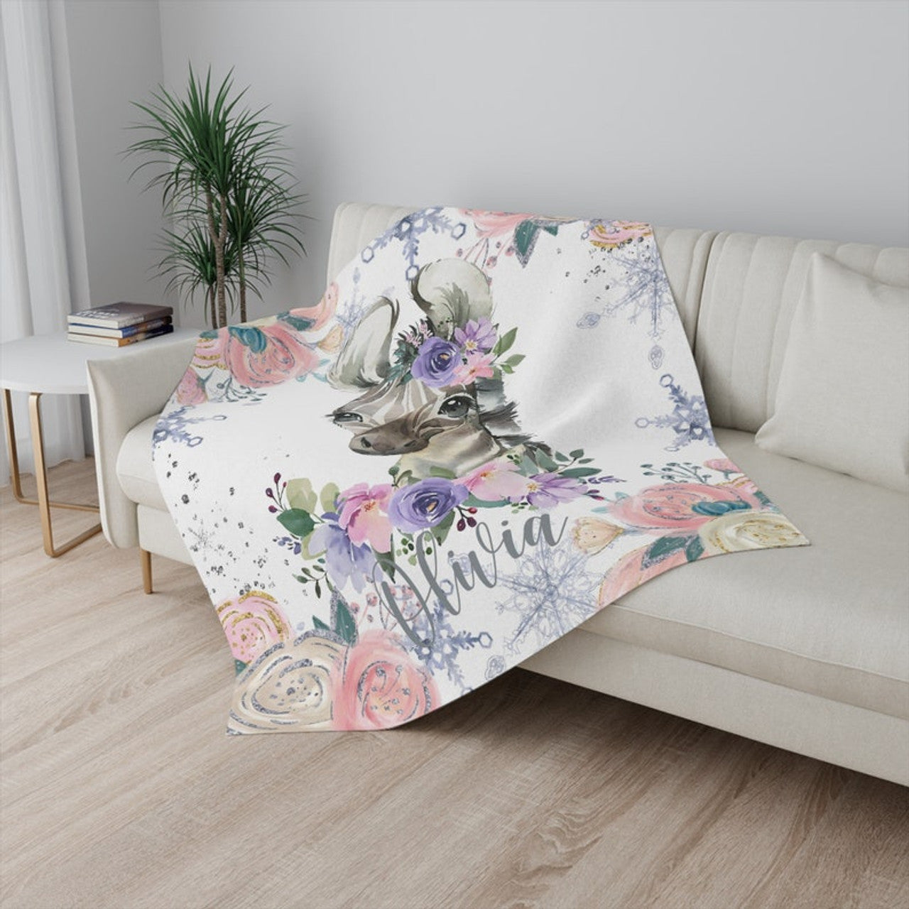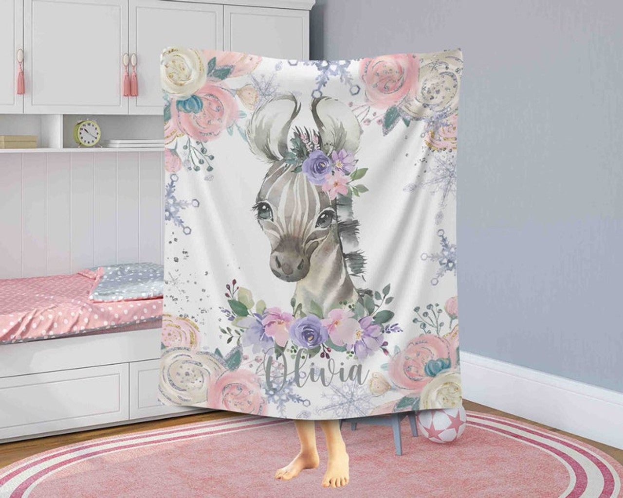 FUNSTUFFPRINT Custom Winter Floral Zebra Nursery Blanket, Personalized Baby Zebra Blanket Christmas Baby Blanket Kids Custom Name Blanket Jungle Baby Shower Gift