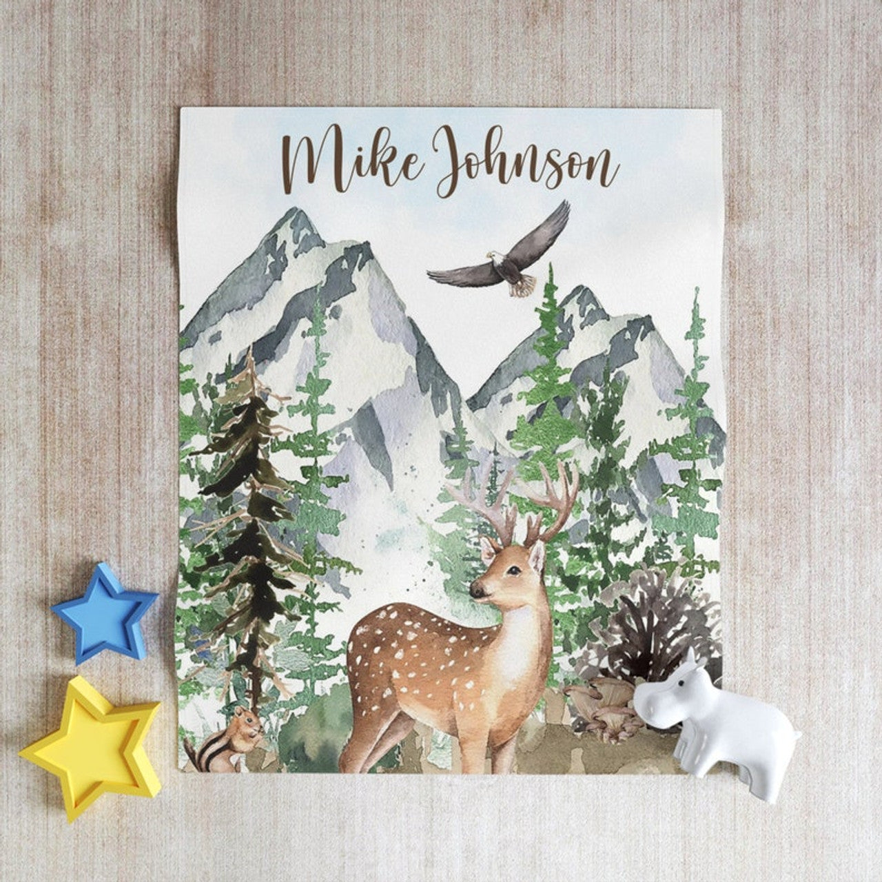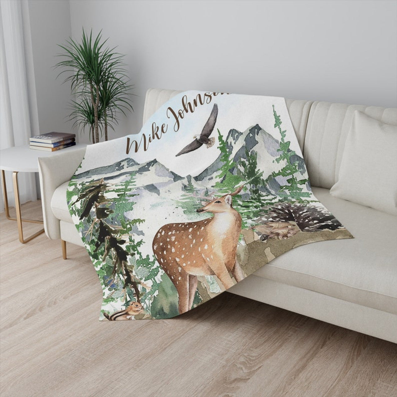 FUNSTUFFPRINT Custom Woodland Deer Nursery Blanket, Personalized Baby Reindeer Blanket, Forest Animal Baby Blanket Kids Custom Name Blanket Baby Shower Gift