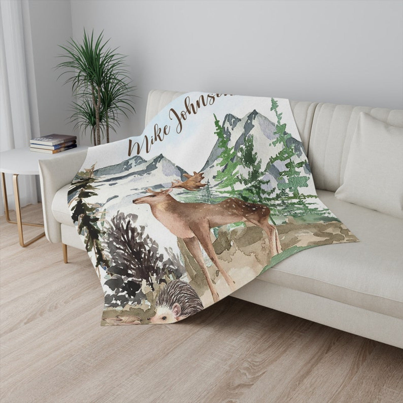 FUNSTUFFPRINT Custom Woodland Reindeer Nursery Blanket, Personalized Baby Deer Blanket, Forest Animal Baby Blanket Kids Custom Name Blanket Baby Shower Gift