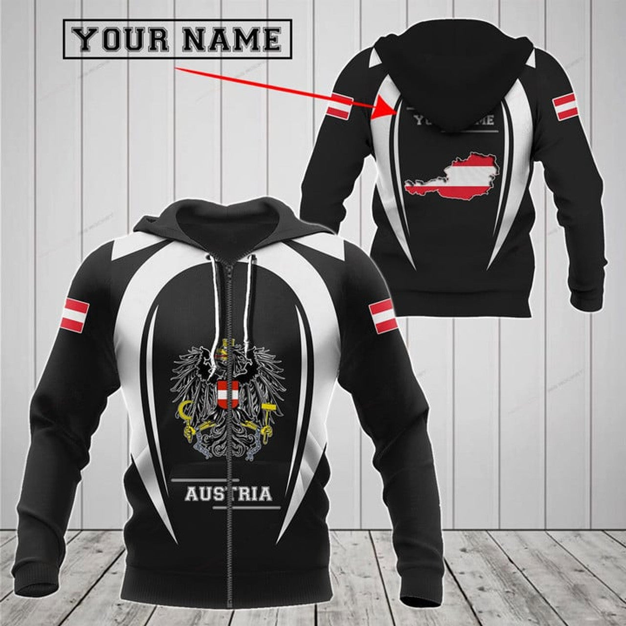 FUNSTUFFPRINT Customize Austria Map & Coat Of Arms 3D Hoodie and Zip Hoodie