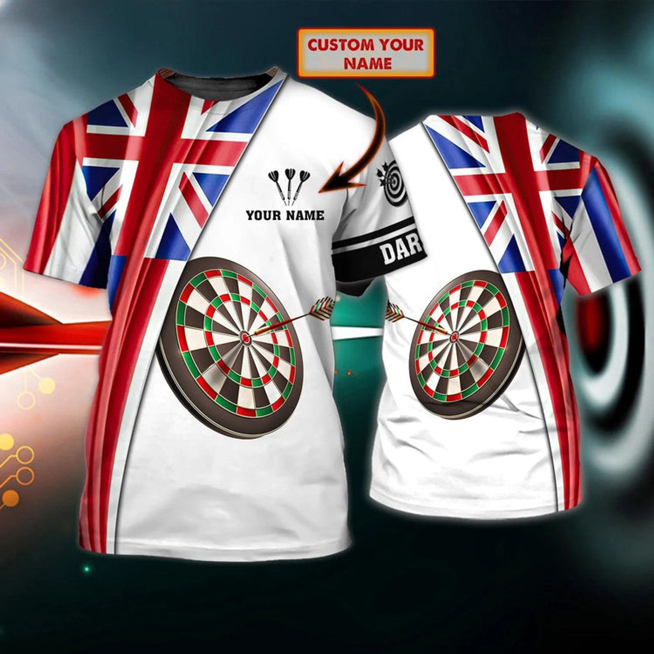 FUNSTUFFPRINT Customized 3D UK DarT-Shirt Dart Player Team Uniform UK 3D T-shirt